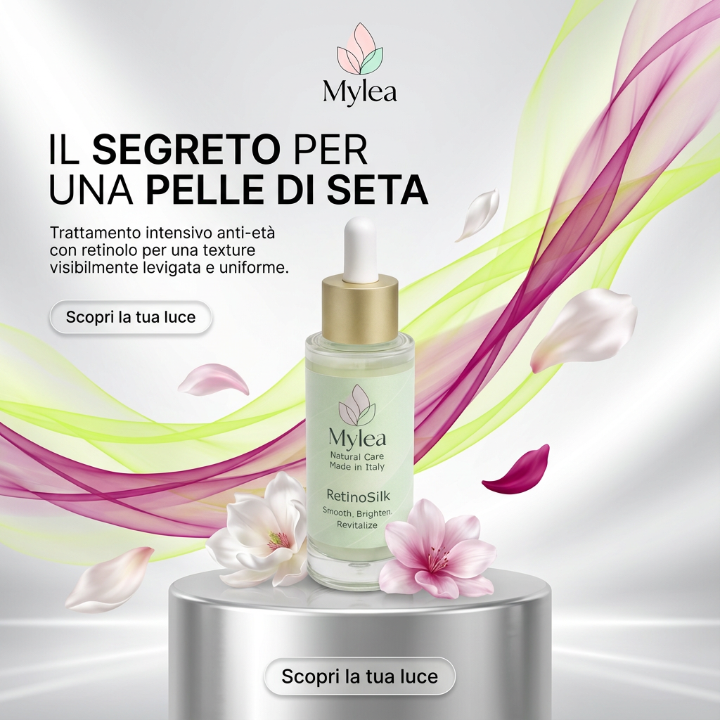Trattamento made in Italy intensivo ad azione anti-età, formulato per migliorare visibilmente la texture e il tono della pelle. Il Retinolo favorisce il rinnovamento cellulare, riduce linee sottili, rughe e imperfezioni, contribuendo a rendere la pelle più liscia e uniforme. La Niacinamide (vitamina B3) agisce in sinergia, aiutando a rafforzare la barriera cutanea, minimizzando i pori e illuminando l’incarnato. Arricchito con Vit. E e Vit. C. il siero fornisce protezione antiossidante contro i radicali liberi. La sua texture leggera si assorbe rapidamente, lasciando la pelle idratata e setosa, senza residui. Ideale per l’uso serale, in quanto la pelle pulita e detersa permette il massimo assorbimento dei suoi principi attivi.